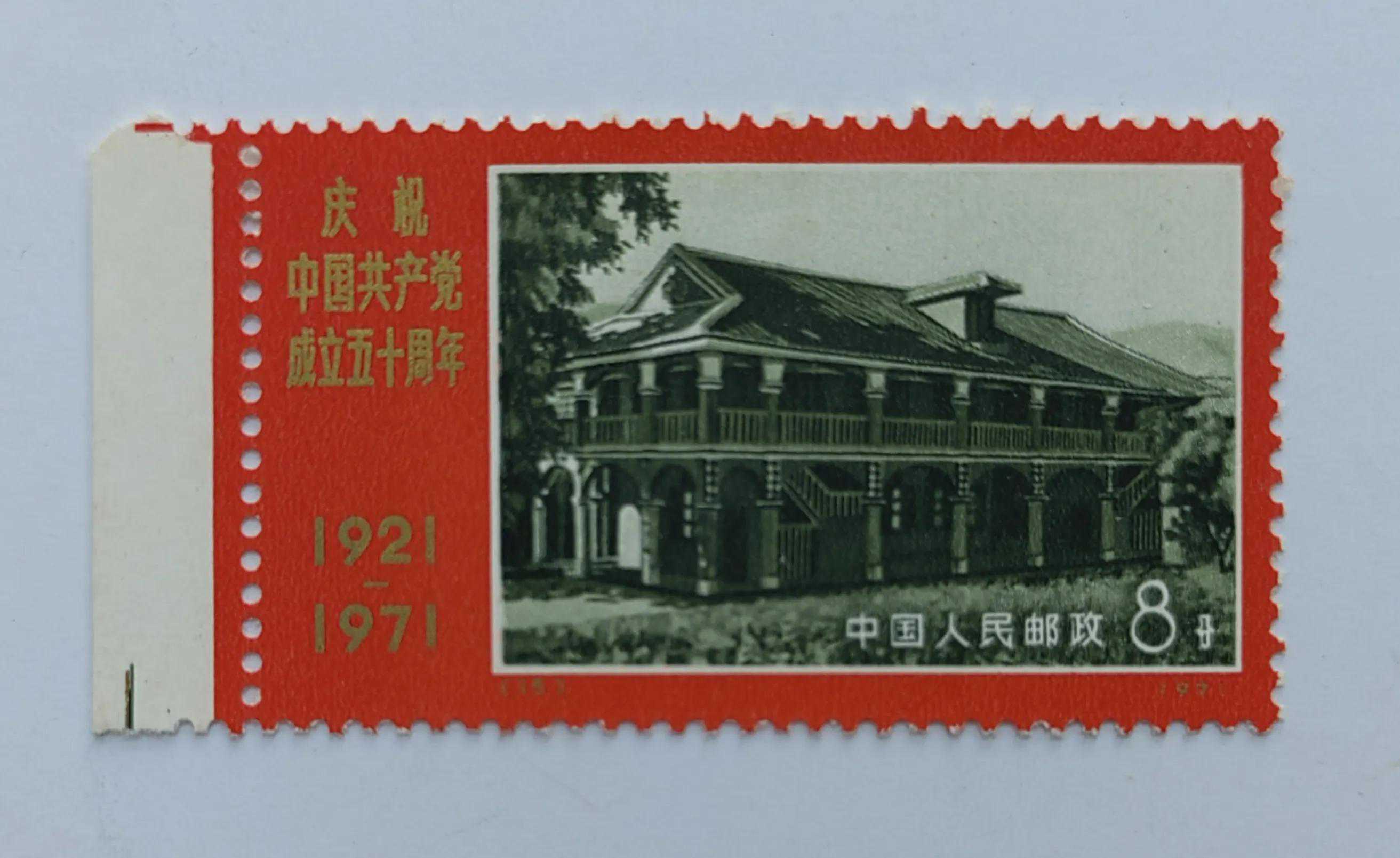 1971年7月1日,国家邮政局发行了一套编号12一20“庆祝中国共产党成立五十周年”纪念邮票,全套9枚,许彦博设计前6枚,全部使用许彦博的水粉画图稿,画面清晰明亮,金色的“庆祝中国共产党成立五十周年”大字印在红色底上更显得喜庆十足。