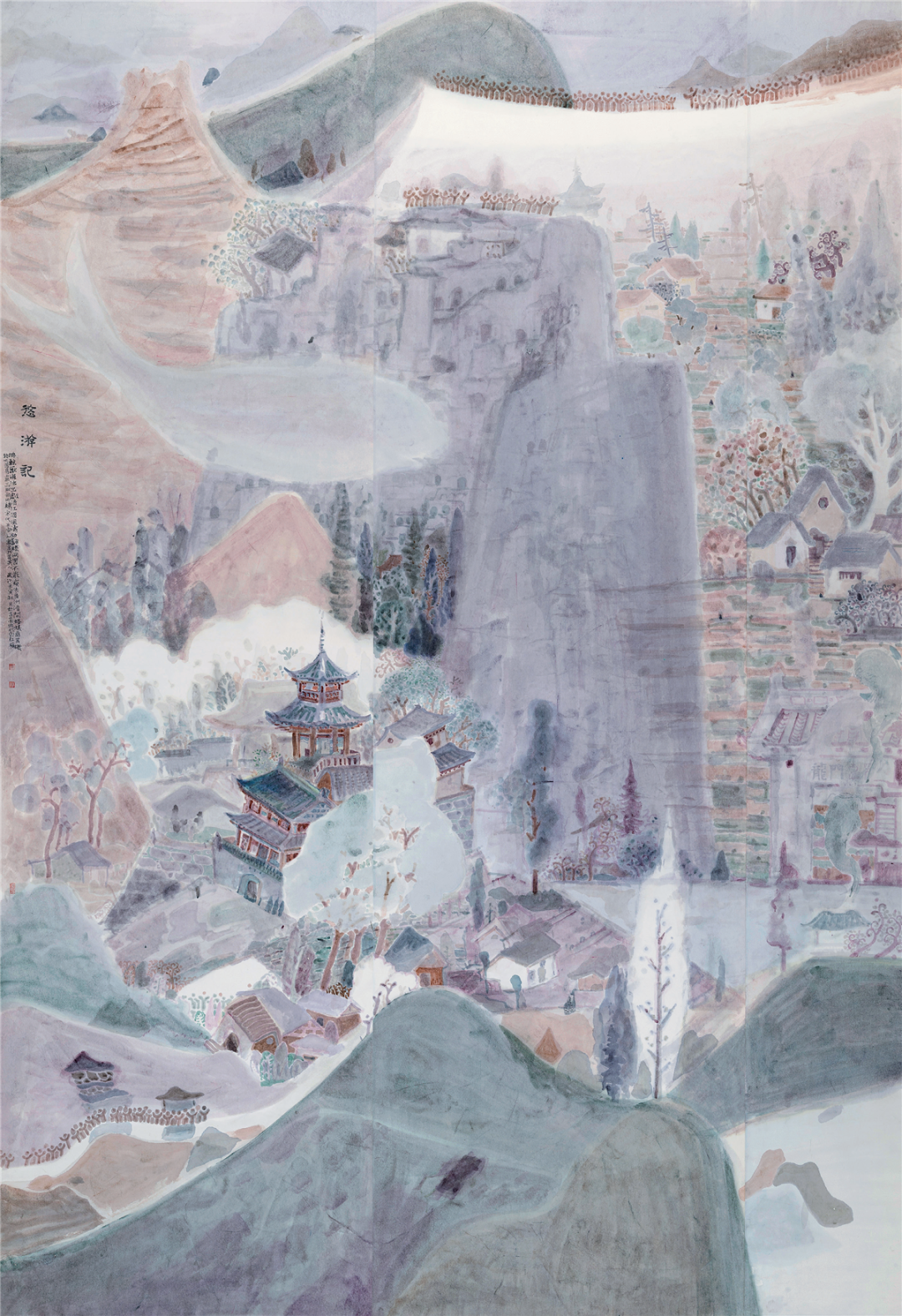 卢虓小城之春中国画210cm×96cm北京