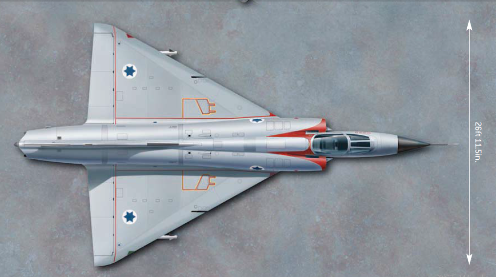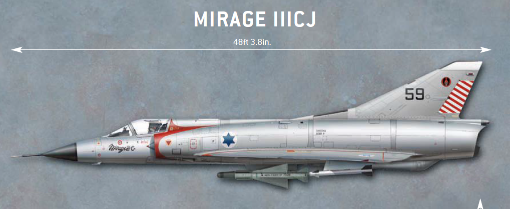 幻影III战斗机的出现比米格-21战斗机早一些,1951年达索公司就开始三角翼战斗机的研制,从1956年首飞的幻影一号到1958年8月8日7吨重的幻影III001原型机,达索公司完成了三角翼战斗机的技术累积,随后投产的幻影IIIC由一架8吨重的预产幻影IIIA战斗机变成一架12吨重高速拦截战斗机,以色列空军是幻影IIIC战斗机的第一个出口客户,这架专为拦截轰炸机而生的幻影IIIC战斗机性能并不是很好,缺乏先进的导航系统,没有STOL能力,也没有机炮,配备了技术不成熟的半主动雷达寻的导弹,不过对当时的以色列空军来说这是中东地区最先进的战斗机,最重要的是幻影IIIC战斗机是以色列空军唯一可选应对米格-21威胁的战斗机,也是以色列保持对阿拉伯国家空中优势的基础。