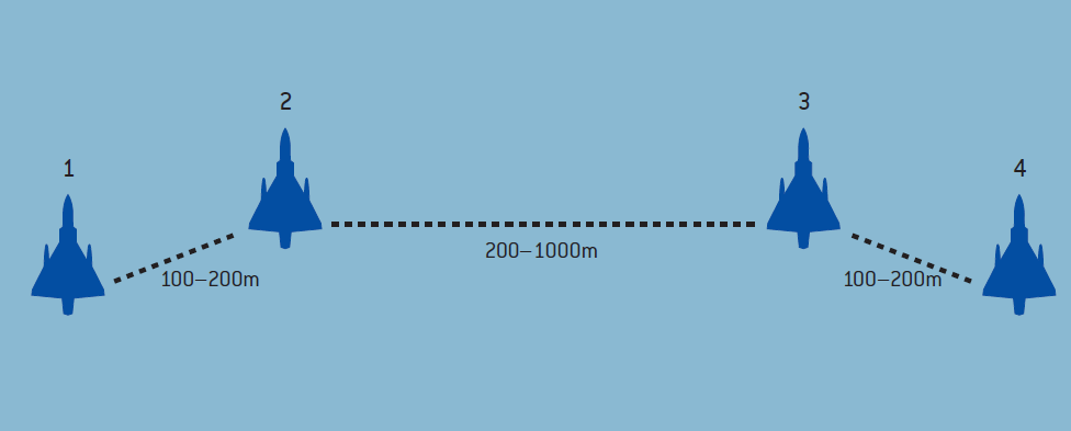 阿拉伯米格-21飞行员和他们的以色列同行使用的战斗机编队也是全世界普遍使用的战斗机编队,最常见的是改良的“四指编队”和单列“踪迹”编队。不同的是苏式截击战术是依靠地面雷达操纵员引导飞行员占据快速攻击的位置,阿拉伯飞行员在飞行中一般都不敢发挥飞机的极限性能,而以色列要求发挥个人主动性,基本飞行单位是双机,一般来说,小队由四机组成,这是执行任务的最小单位。强调传统的空中格斗和互相支援,一旦投入战斗,僚机可以自由攻击目标,不必像在二战中那样只能寸步不离地掩护长机,飞行员们自行协调他们的攻击活动,以便打乱敌空军编队,