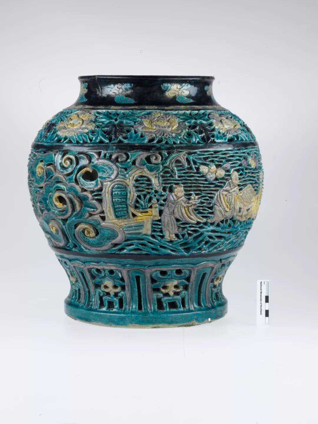 镂雕高士对弈纹罐苏格兰国家博物馆藏