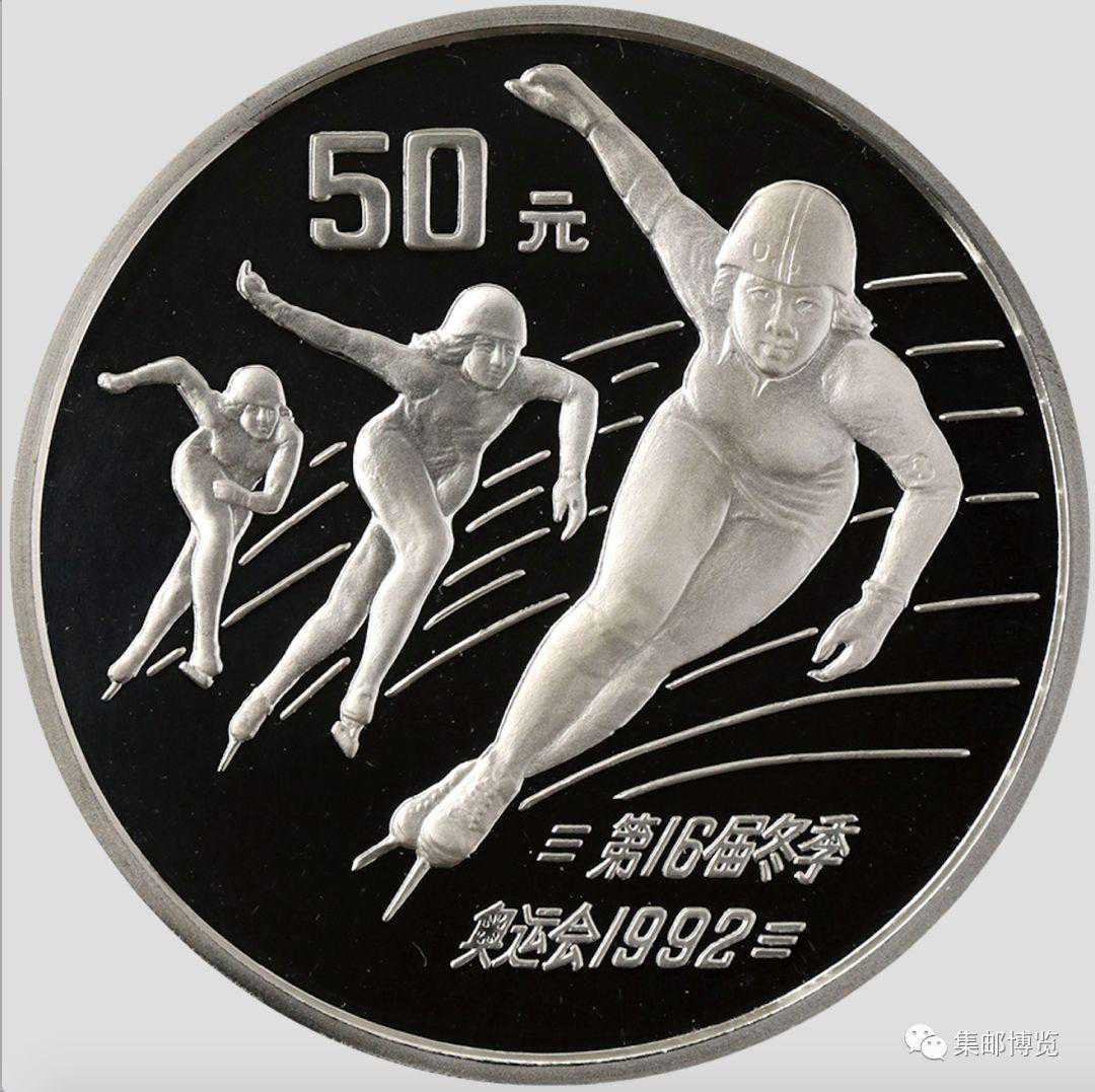 为纪念本届冬奥会,我国发行了1金2银共3枚纪念币,其中1990年抢先问世的“速度滑冰”5盎司银币是整个“冬奥会”系列纪念币中分量最沉的品种,其背面图案为3名比赛中的女子速滑运动员,由远及近地刻画出速滑运动的独特动势。