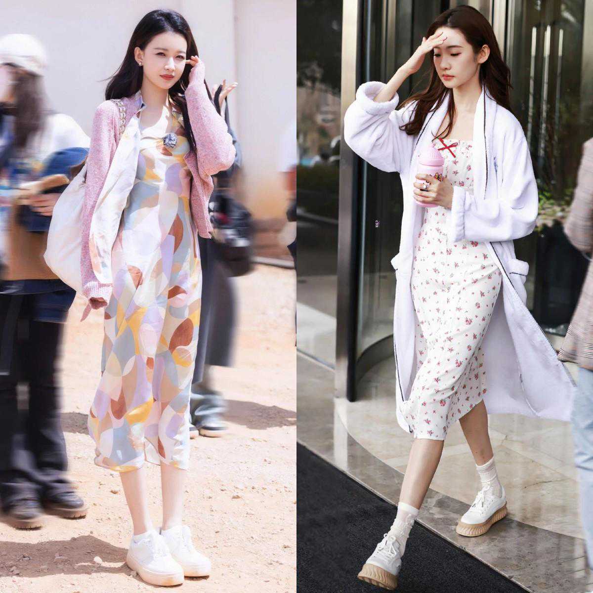 甜美减龄的小碎花裙搭配运动鞋是返璞归真的体现。浅色系的小碎花裙温柔可人,深色系的碎花裙又透露出一股法式轻熟的优雅,配上风格相符的运动鞋,即可从容应对不同场合,展现多变的自我。
