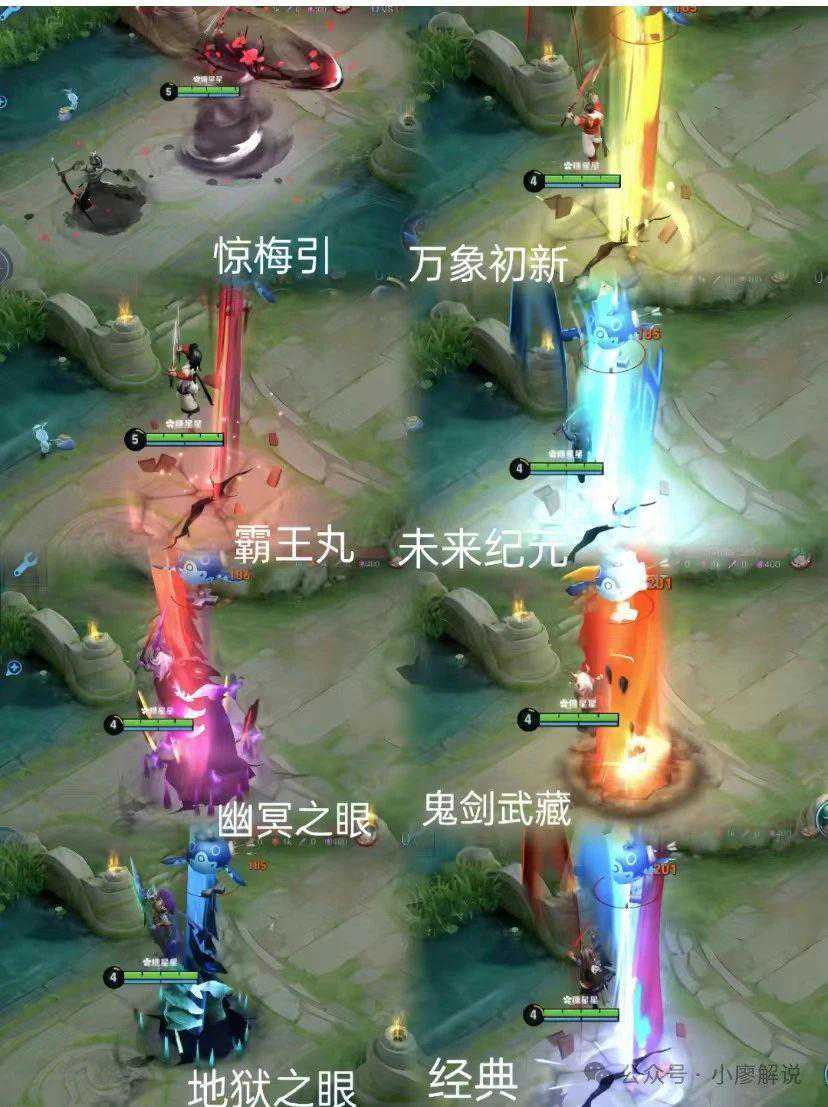 其实一技能的对比中,我们可以很好的发现,前面的几款皮肤可以免费获得的皮肤品质其实还不错,但是特效上是跟原皮的差距是不大的,就是鬼剑的特效还是比较有特色点,地狱之眼和幽冥是传说和星元了,特效上两款区别不大,就颜色变了,造型上其实就是变成了还有一股后劲的感觉,大招的元素比较多一些,惊梅引其实就是梅花的配色结合水墨的形式了,挺有特色的,我比较喜欢这一款皮肤。