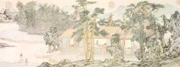 文徵明《真赏斋图》(81岁作)纸本淡设色28.6×79cm上海博物馆藏