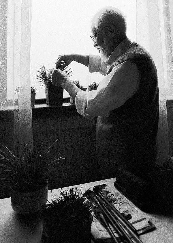 蔡斯民拍摄朱屺瞻在摆弄菖蒲