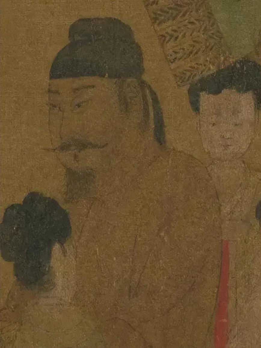 此处男子头戴的发冠,与日本的“垂缨冠”神似。“垂缨冠”原是日本古代文官服饰的组成部分,初为祭祀礼服,后发展为官服,而我国并没有这样的装束。看他的模样,是不是和日本的传统贵族如出一辙?