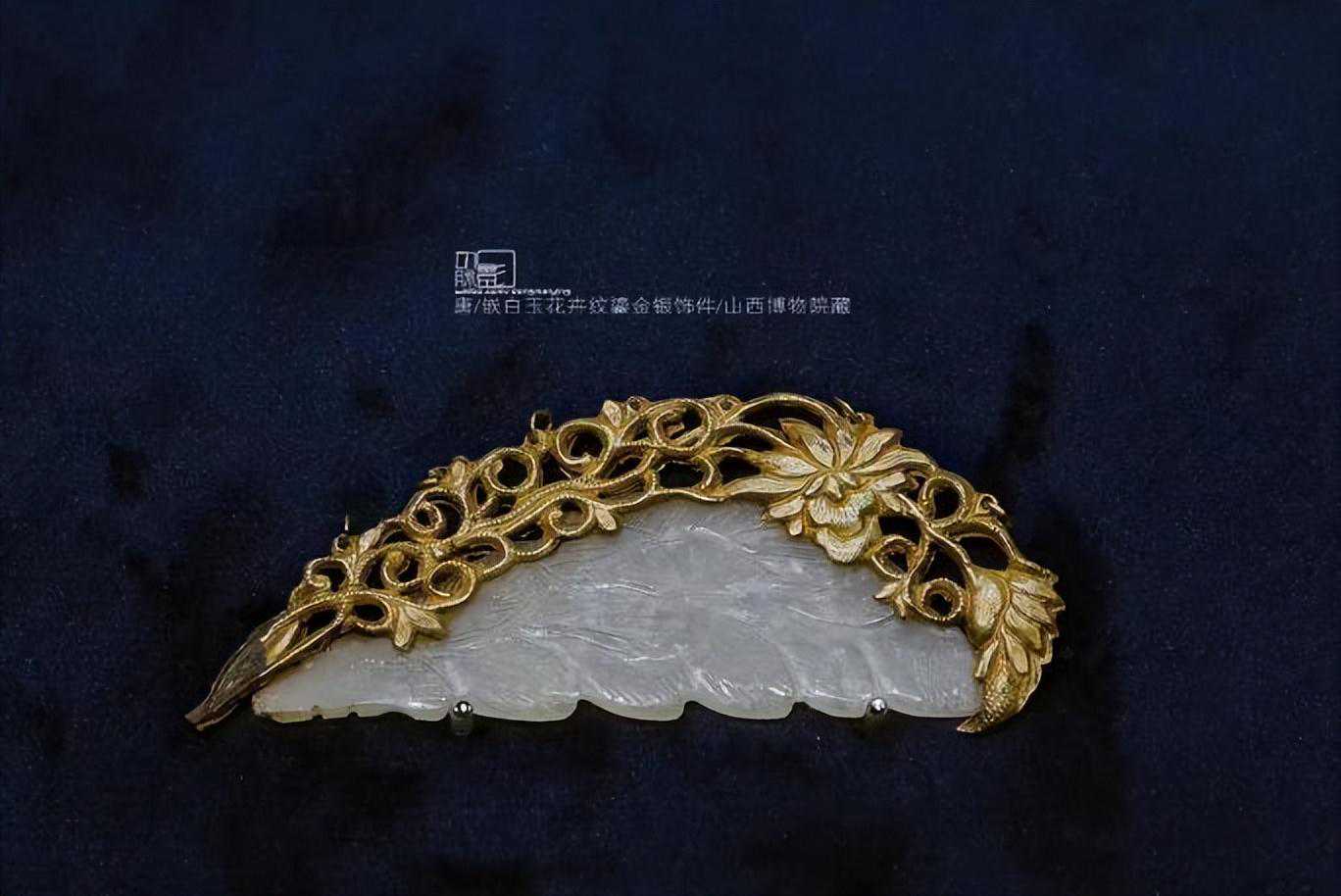 唐嵌白玉花卉纹鎏金银饰件山西博物院藏