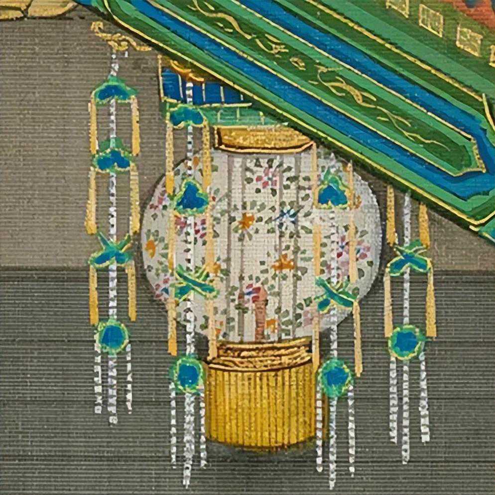 上:故宫博物院藏《乾隆帝岁朝行乐图轴》局部,灯笼内部的纵向骨架清晰可见