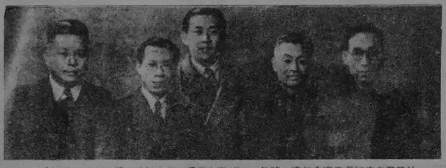 “五人联合油画展”合影(左起:周碧初、陈抱一、宋钟沅、朱屺瞻、钱铸九)