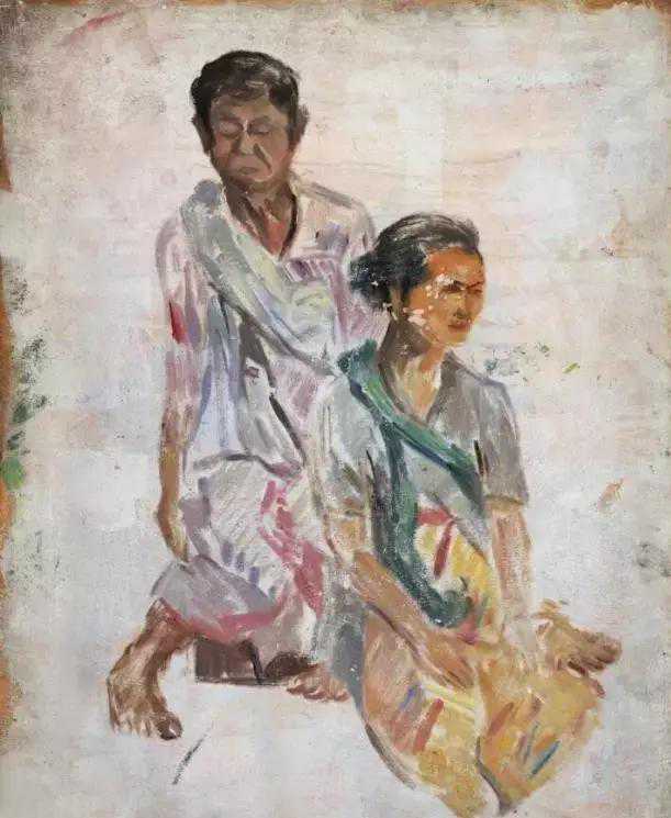 周碧初《印尼夫妇》42×32cm1953
