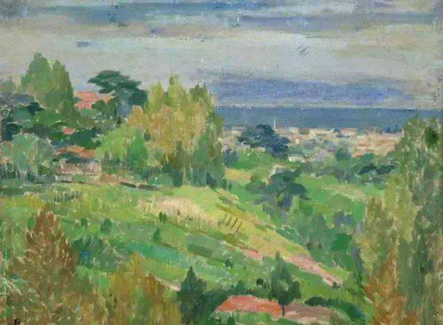 周碧初写生作品《塞纳河畔》