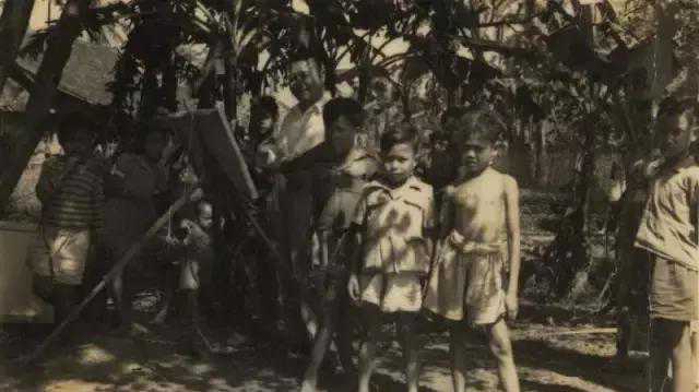 50年代,周碧初在印尼写生与当地孩子合影
