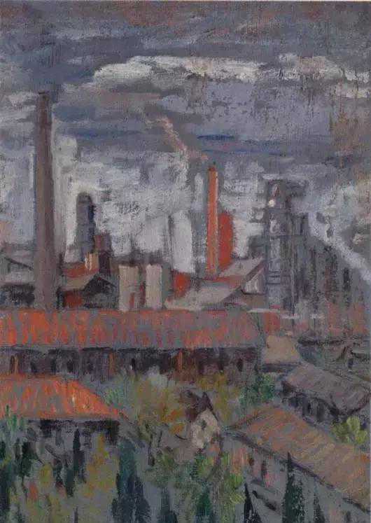 周碧初《炼油厂》布面油画29×19cm1964