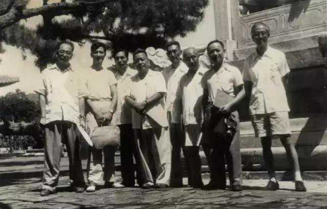1960年7月,周碧初赴北京参加中国文学艺术工作者第三次代表大会(右起:谢海燕、张充仁、颜文樑、周碧初、杨可杨、丁斌、唐云)