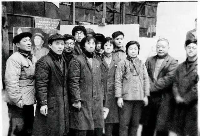 1966年,油雕室部分创作人员在文化广场大棚留影(左起:富华、邵隆海、俞云阶、陈逸飞、刘耀真、魏景山、程偕华、朱广发、朱德贞、周碧初、邱瑞敏)