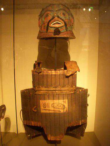 ▲北美阿拉斯加及阿留申群岛上的土著用木料制造的铠甲和战盔,不仅工艺精良,而且极富艺术想象力,是蒙昧时代人们创造力和智慧的绝佳证明