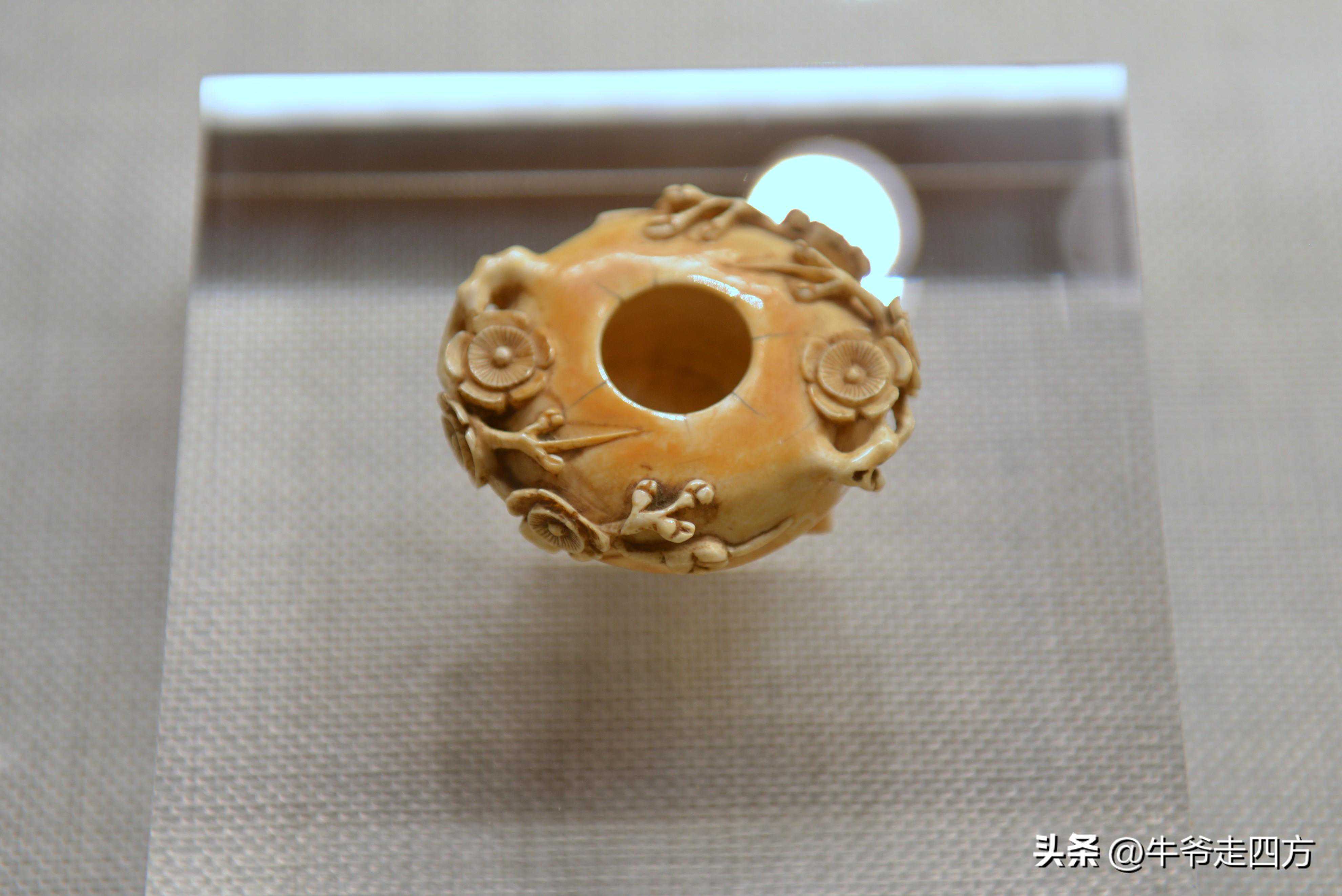 梅花浮雕牙质水丞:梅是千百年来受人们宠爱的风骨之花,枝干苍劲、风姿高雅、清香隽永,凌寒独放。常为人所寄托傲霜斗雪,刚韧不屈的美好品格。