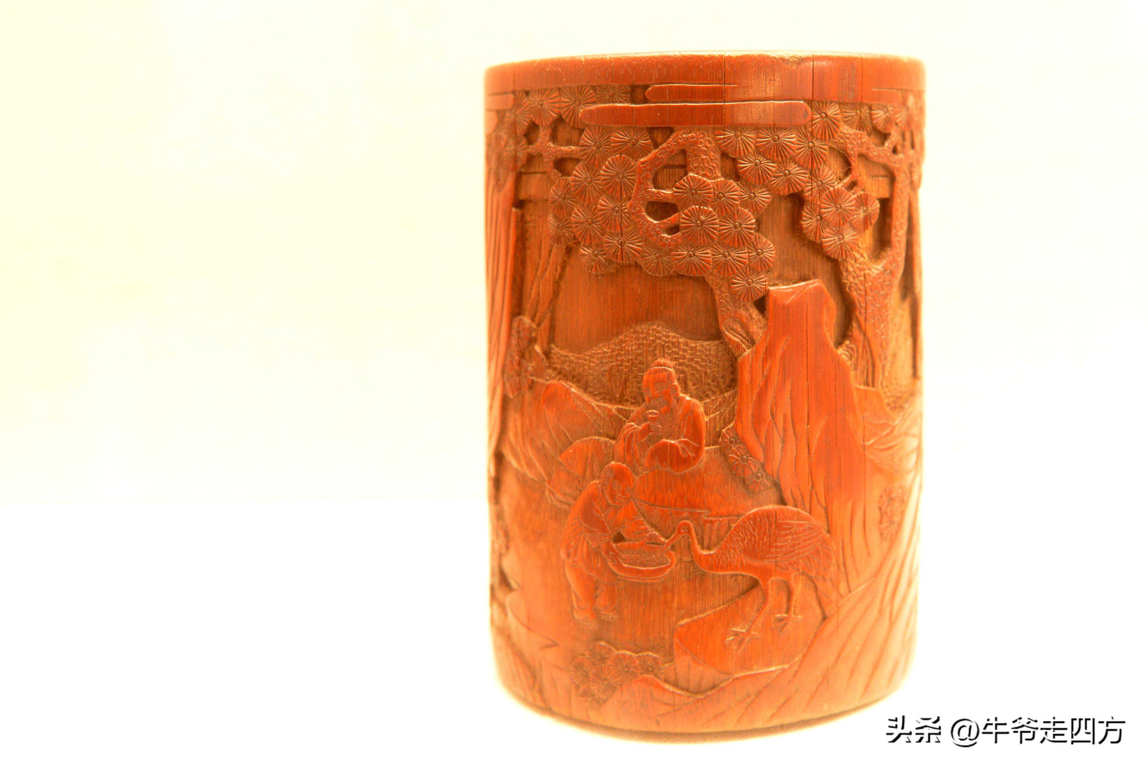 松鼠采葡萄牙雕笔掭。松鼠葡萄为相对固定的传统搭配组合。松鼠寓意长寿富贵,葡萄多果多籽象征子孙众多,寓意万代绵长。长寿多子是古人对幸福生活的主要追求之一。