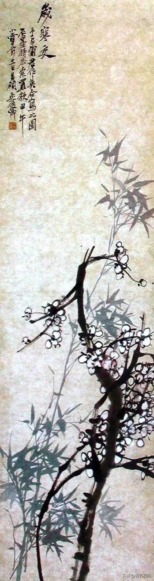 岁寒交图,蒲华吴昌硕,1890,纸本设色,141.7×39.1cm,浙江省博物馆藏