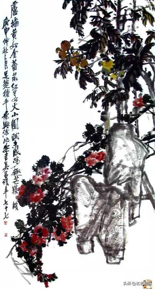 ▲五色梅,吴徵,1941,纸本设色,102×34cm,荣宝斋藏