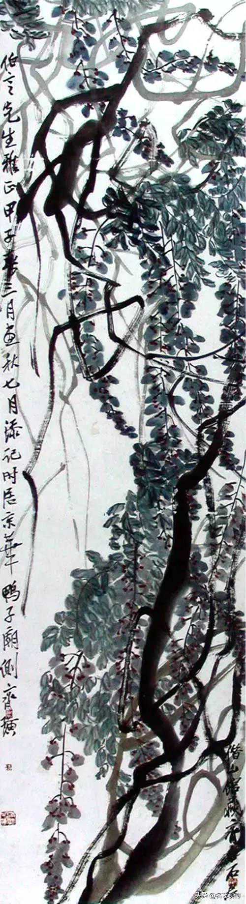 藤萝图,齐白石,1924,纸本设色,177×48cm,天津人名美术馆出版社藏。