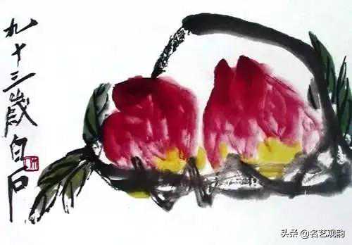 桃篮,齐白石,1950,纸本设色,25×39.6cm,北京画院藏。