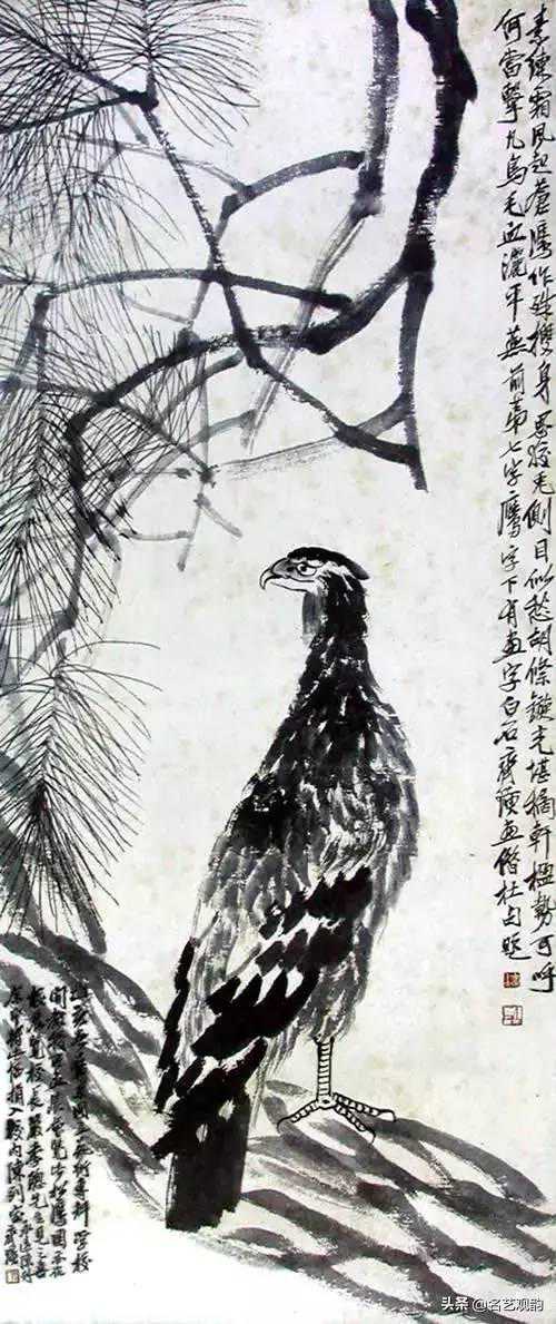 松鹰图,齐白石,1935,纸本水墨,150.8×62.8cm,中央美术学院藏。