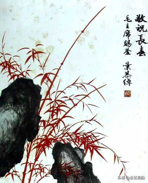 ▲朱竹,叶恭绰,1934,纸本设色,90×80cm,中南海藏