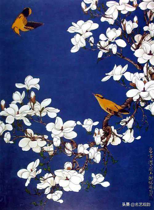 ▲玉兰黄鹂,于非闇,1956,纸本设色,102.5×76cm,中国美术馆藏。