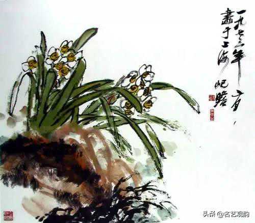 ▲水仙,朱屺瞻,1973,纸本设色,70×62cm,上海中国画院藏。