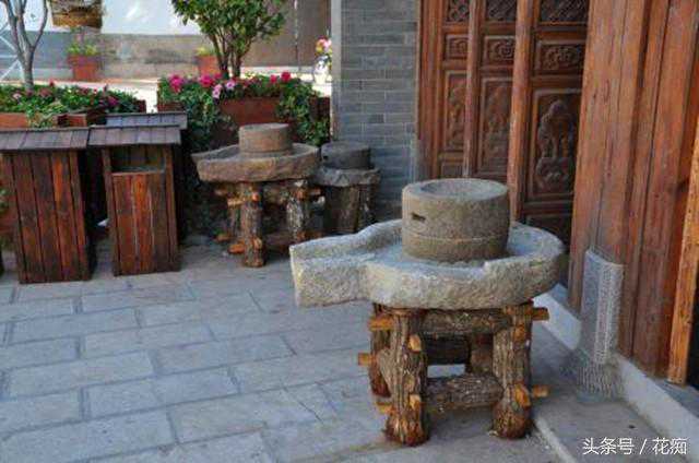 石磨风景,这里所说的只是将石磨摆放在木质架子之上,用来做简单装饰的,可摆在室内或者门口,即使是什么都不装饰,它也会自成一景,不管谁见到这个老物件,都会想起儿时那段美好快乐时光。
