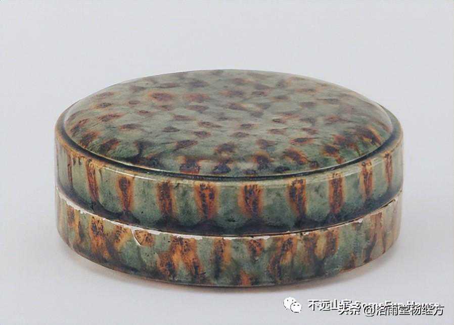 美国波士顿美术馆藏唐巩县窑黄釉绞胎带底座盒