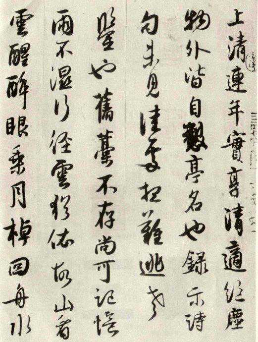 元赵孟頫云:“道祖书如王、谢家子弟,有风流之习。”又云:“脱略唐、宋,齐踪前古,岂不伟哉!”又云:“薛书诚美,微有按模脱击之嫌。”