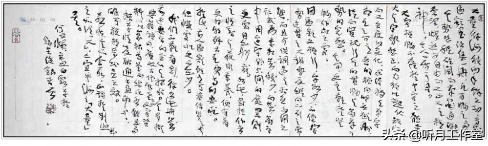 何应辉《隶书心经》他在小字行草创作上,与大字行书的倚碑求质、雄强其骨相异,在这类创作中他惯用软硬适中的短锋兼毫,以风韵文雅、用笔质浑为基础,表现出以帖为趋、点画爽利、跳掷自在、巧拙互用、体貌苍秀、文质兼会的艺术特点。他多取手札形式,字法、笔法多变而又统一于总体风格,并善于化取二王一系帖学洒落自在的风神,风樯阵马的笔势,其间谢无量翩翩自得、了无挂碍而天机流泻的书风亦对他产生了重要影响。