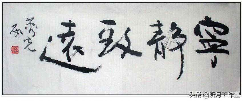 何应辉《行书宁静致远》何应辉书法风骨最彰者。他充分发挥长锋羊毫蓄墨多、柔韧富变的工具性能,在用笔上疾以取势,涩以蓄意,兼以融通书画的多种笔法形式,不独尽笔之性,尽墨之用,形成『润含春雨,燥裂秋风』的特殊风韵,并在直中求曲、曲中取态的点画意趣上;在寓平正于险绝、寓险绝于整肃的字法陈置上,化古出新,取得笔沉气厚、真力内守、大开大合、气势外溢的艺术效果。