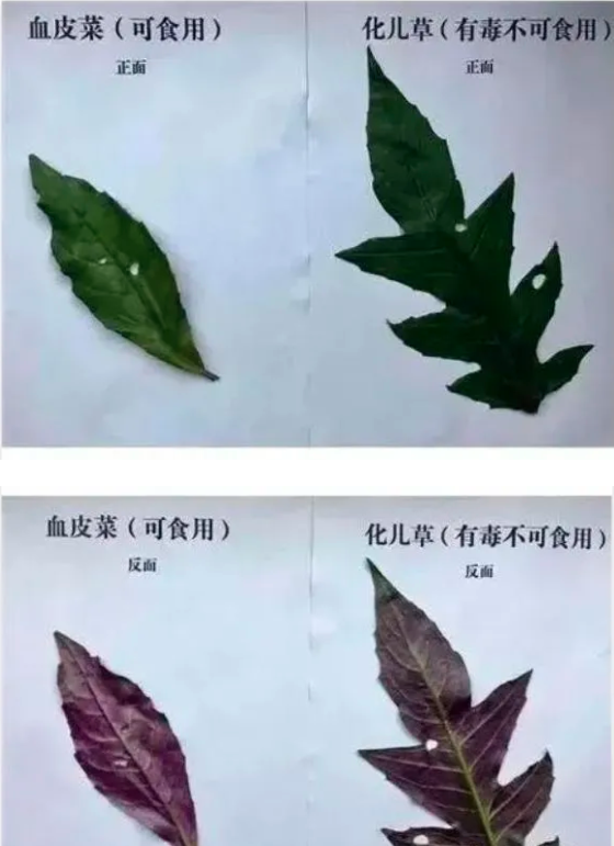 2023年4月1日,四川省宜宾张女士(化名)一家6人回到老家扫墓,结束后在野外摘了一斤“血皮菜”拿去饭店加工,食用后没多久全家人陆续呕吐头晕。去到医院才发现,将只能外敷的“化儿草”误当成了“血皮菜”。