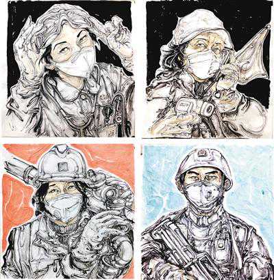 画院画家们克服了场地画材有限、不能外出到一线采风写生等困难,紧紧围绕坚决打赢疫情防控阻击战主题,创作和募集到近600幅抗疫主题作品。西安市文化和旅游局文旅之声官微和西安中国画院官微,先后联合推出4期抗疫主题美术作品网络展,2期武汉西安两地抗疫主题作品联展,发布画家抗疫主题创作心得系列谈15期,作品种类囊括了国画、油画、书法、篆刻、设计、素描、速写、漫画、儿童画等多个门类。其中画院王犇院长作品入选中国国家画院主办的中国美术报创作谈专辑,画家倪超、蔡学海作品分别入选中国美协官微推出的抗疫第56和93期作品专辑。除了动员画院画家创作外,在市委宣传部、市文旅局的指导下,西安中国画院还广泛联合了陕西省美协、西安美术学院、西安市美协以及广大西安的美术爱好者、少年儿童参与创作、踊跃投稿,最远与画院的军民共建单位——新疆哈密边防支队保持网络联系,由支队为我们提供创作素材和基层干警的抗疫作品。