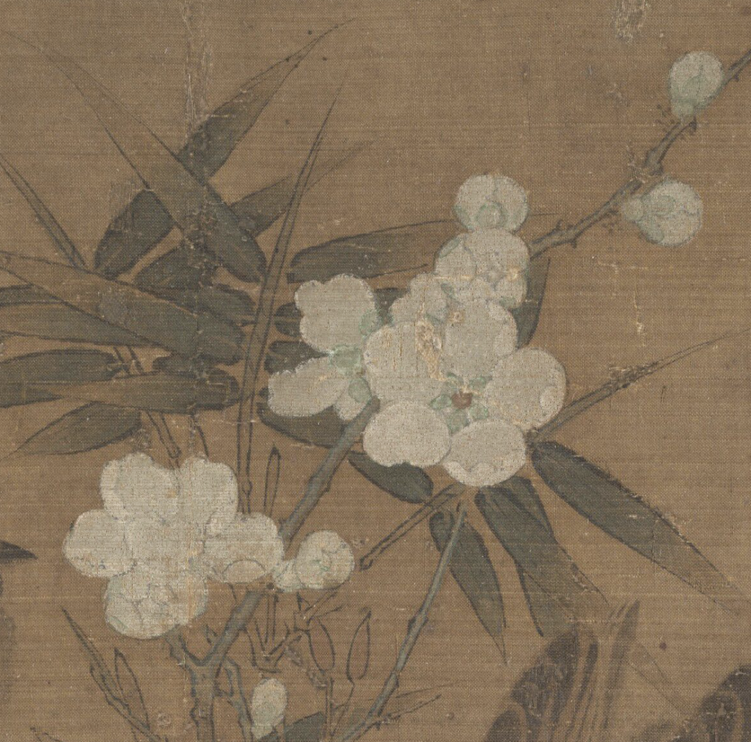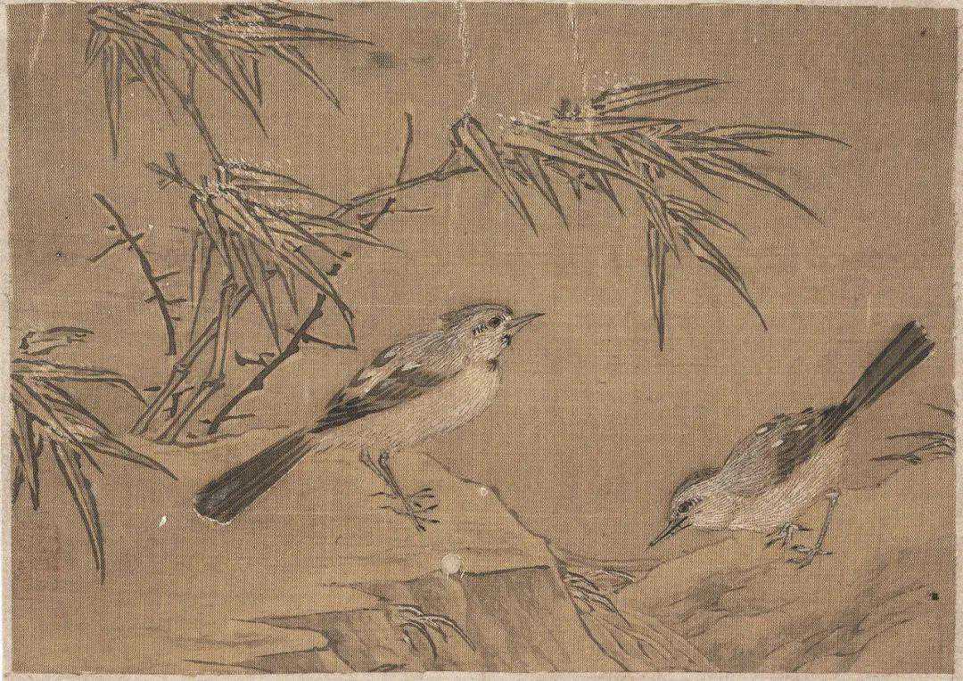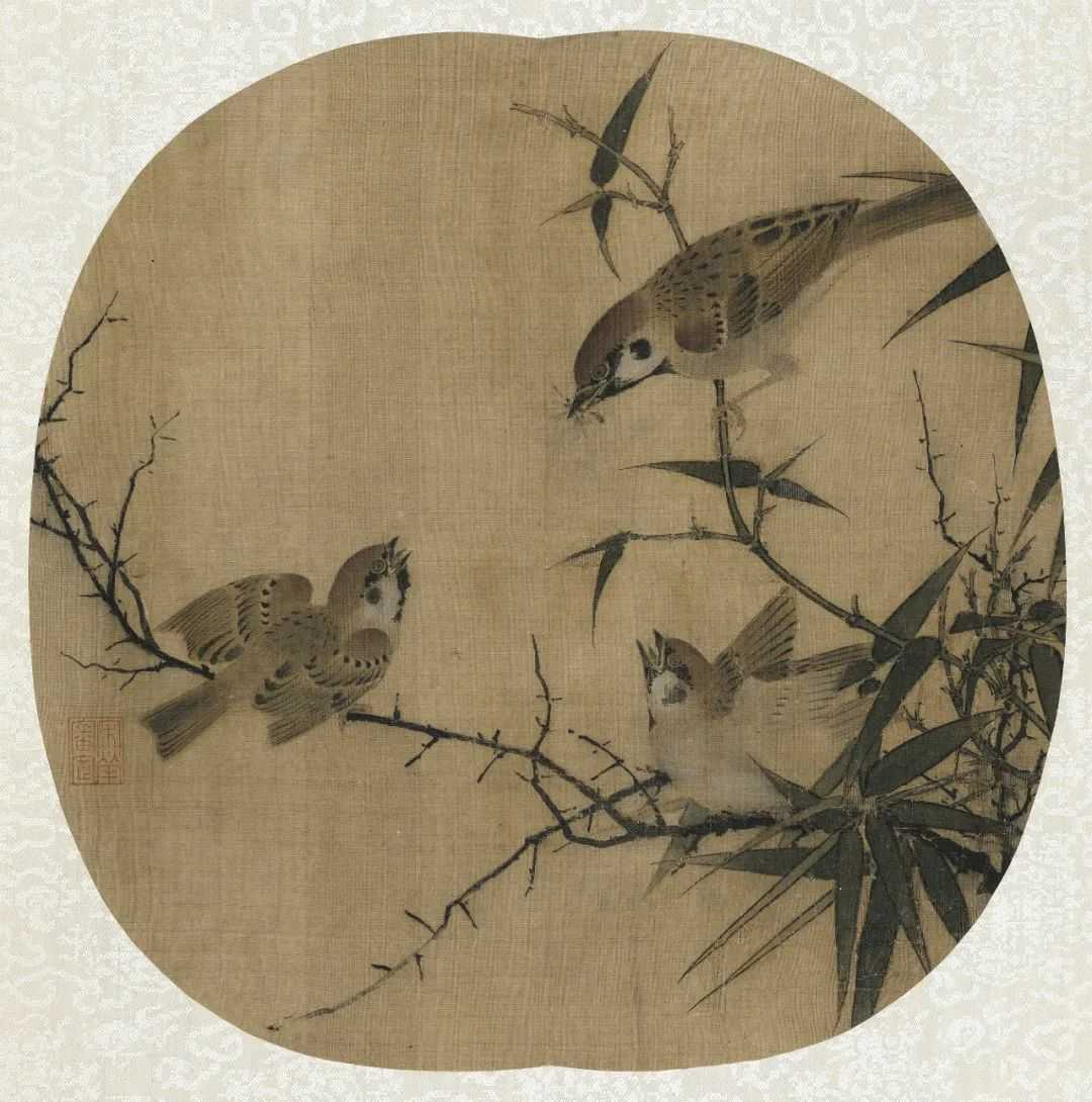 此图画翠竹寒梅,残雪未消,寒雀剔羽枝头,栩栩如生。梅枝用苍劲顿挫的皴笔画出,竹用劲细的墨笔双勾后染色,寒雀用细毫写羽毛,梅花用粉晕染而成,意韵清拔隽逸,是南宋小品画的佳作。