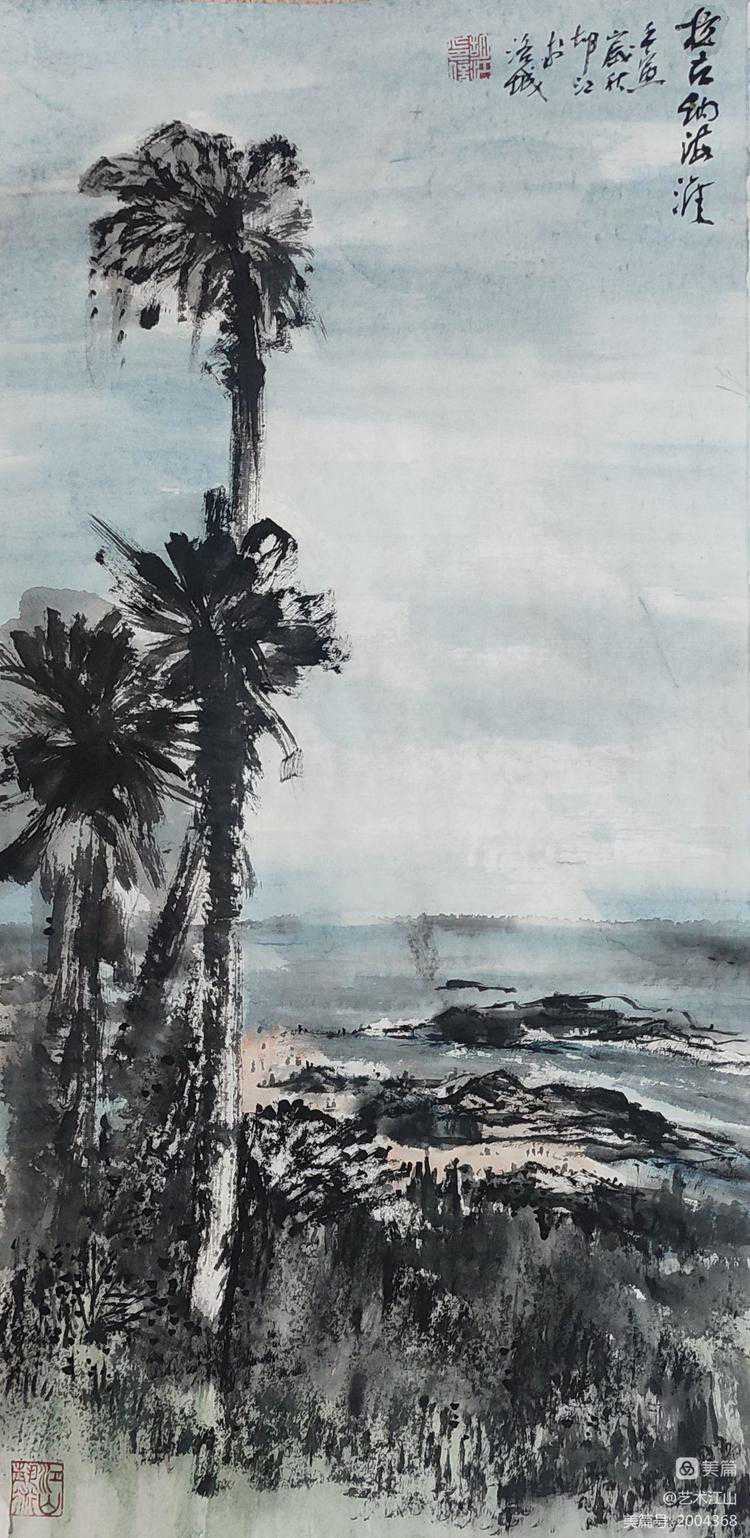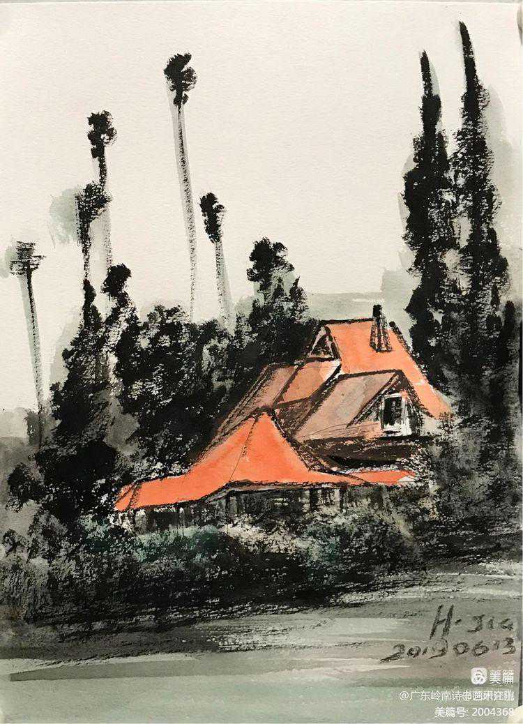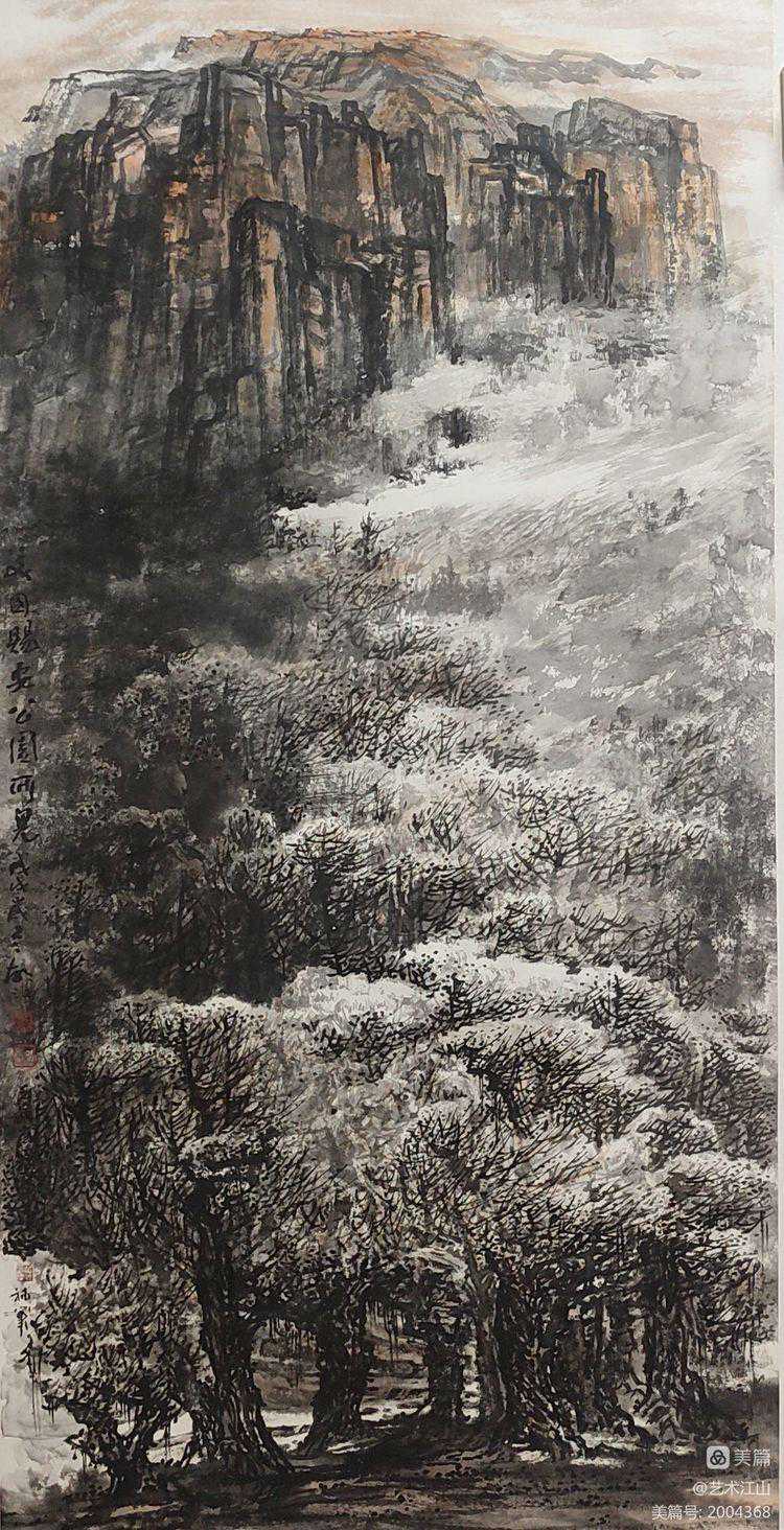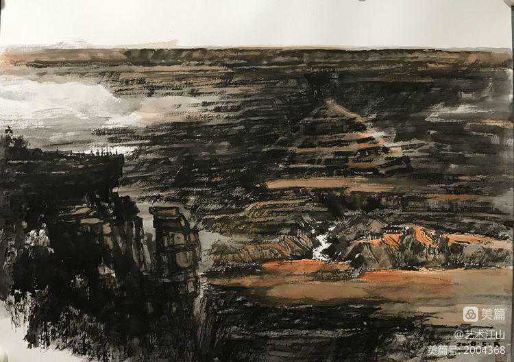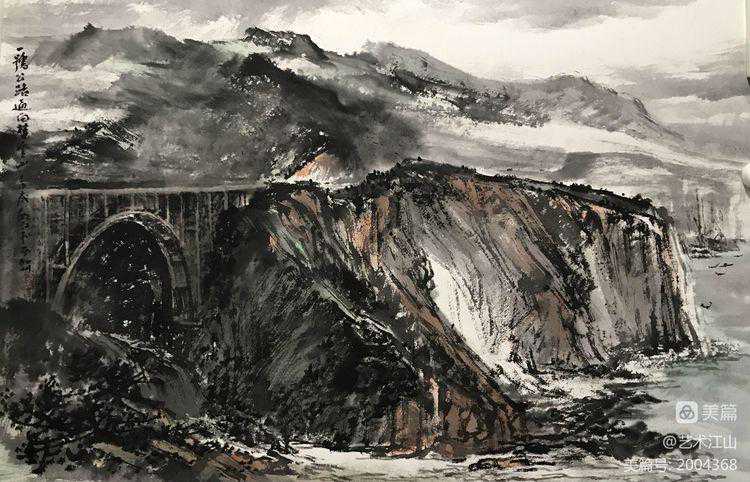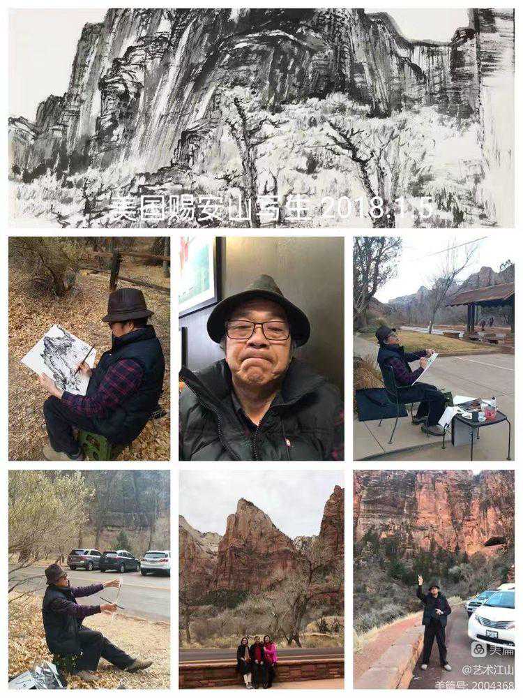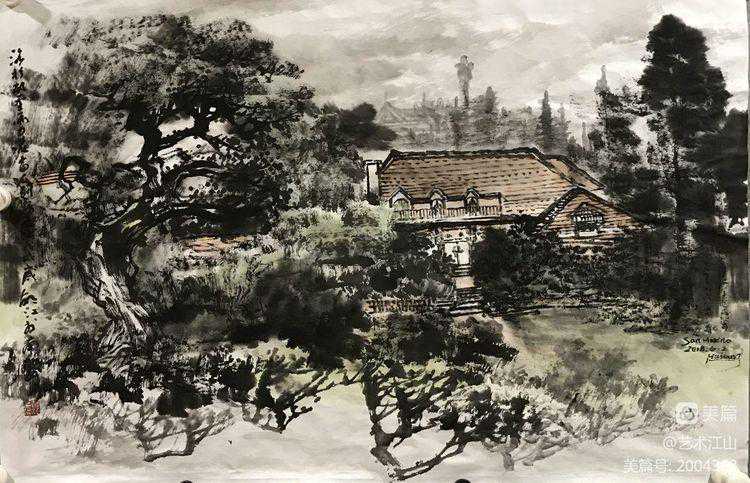 2019年初,我有机会在美国纽约州立奥尔巴尼分校作交流访问学者一年,假期时间,曾与胡江老师及几位旅美华人画家在LA有过交流与学习的机会,并跟随胡江老师到过几个著名景点去采风写生,目睹他用中国画写生创作的过程。深深感受了到胡江老师用中国水墨画表现域外风暴的乐趣与笔墨技巧。