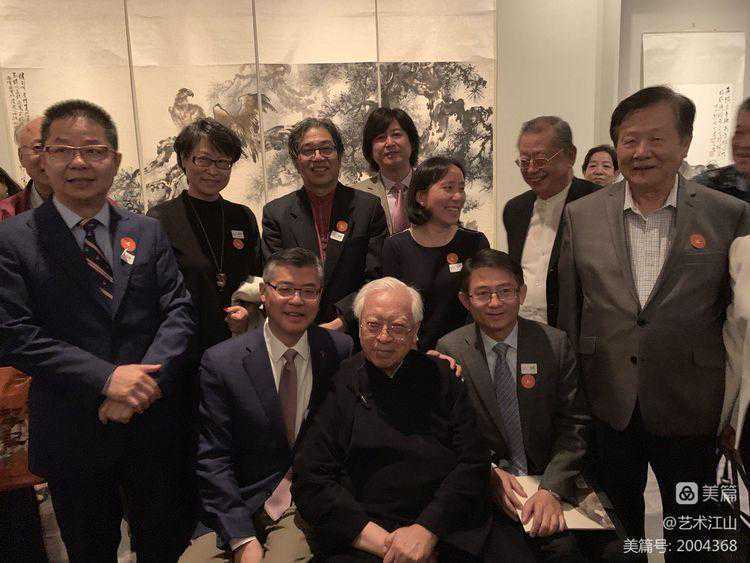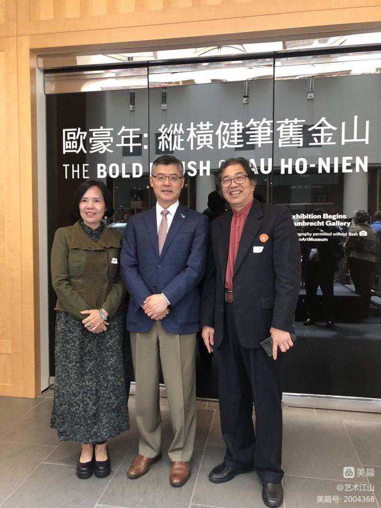 ▽2019年7月在旧金山亚州艺术博物馆参加欧豪年个人展览开幕式上与欧豪年先生(前排右三〉、许杰馆长(前排左二〉等与会艺术家合照。