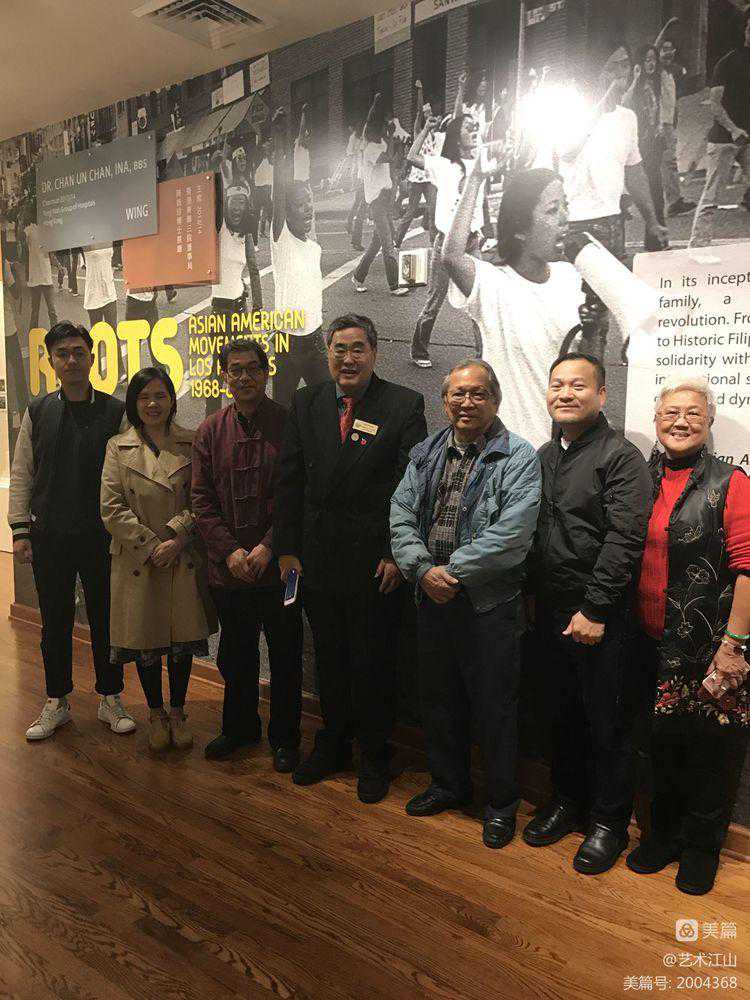 ▽2018年2月与孙中山曾孙孙国雄、洛杉矶华美博物馆阮桂铭博士、美国书画研究院院长杨建立、徐展超董事长等好友在洛杉矶华美博物合影。