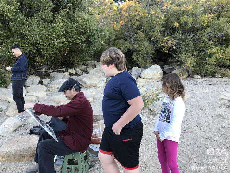 ▽2019年7月与学棣李青游在圣贝纳迪诺县写生。