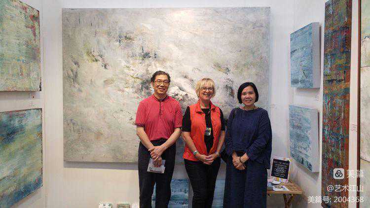 ▽2017年参观在圣地亚哥举办的美国南加州艺术博览会。与洛杉矶油画家罗娜合影。