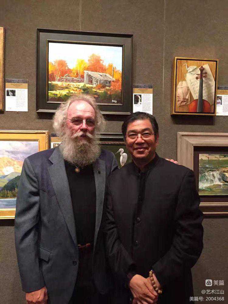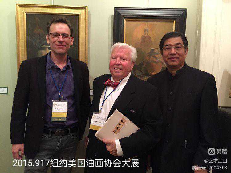 ▽2015年9月与时任美国油画协会主席亚肯.沃雷得及前任美国油画协会主席詹姆斯合影。