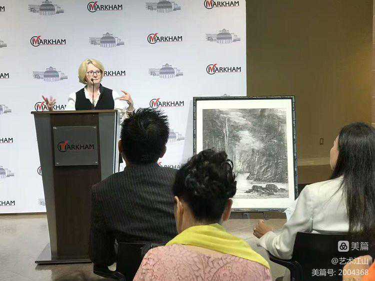 ▽2017年7月底应邀出席在多伦多举行的加拿大第二届文化艺术节新闻发布会。(主席台旁还展示了我的几幅国画作品)