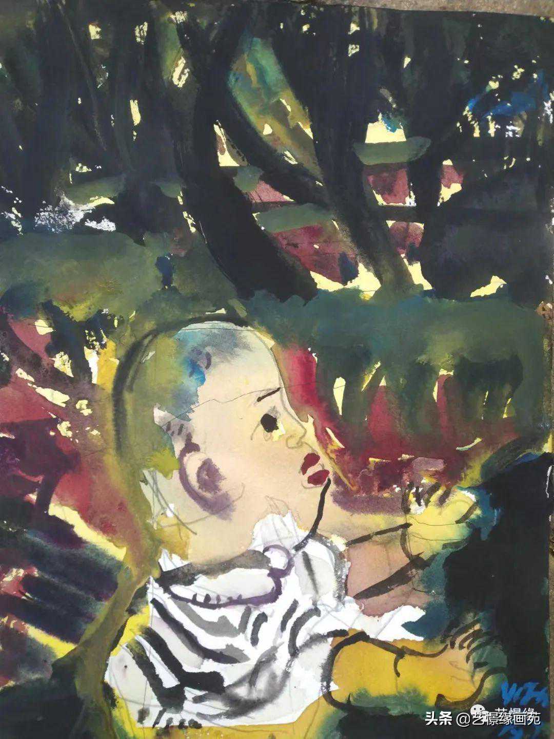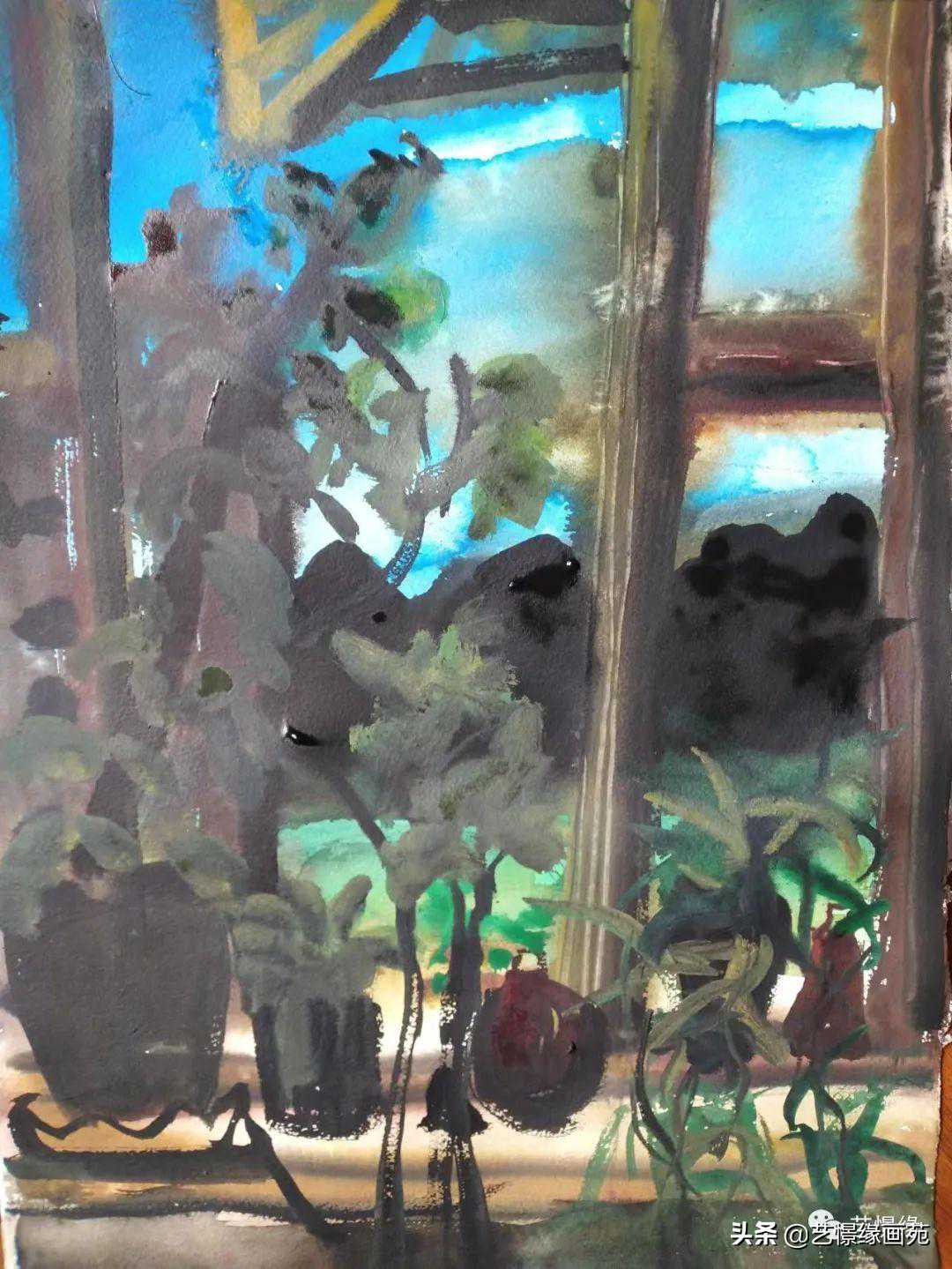 李晓明老师说用画油画的刮刀画了一幅水彩,很好玩。