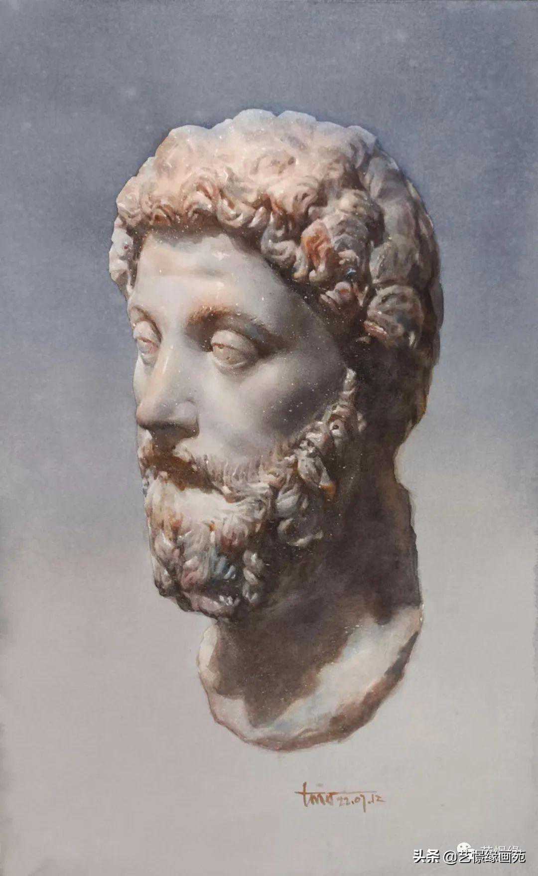 天津老刘的这一幅《奥勒留》,是他的得意之作,昨天被一位小红书的粉丝买走了,心里像挂了十五只吊桶打水,七上八下。画家们作画,精品往往可遇而不可求,卖或是不卖,都是个问题。