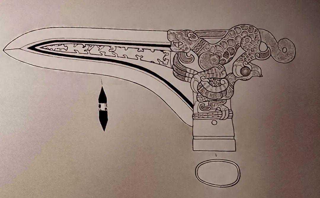 援长13厘米,前锋尖锐、边缘薄利,中心透雕精美花纹。