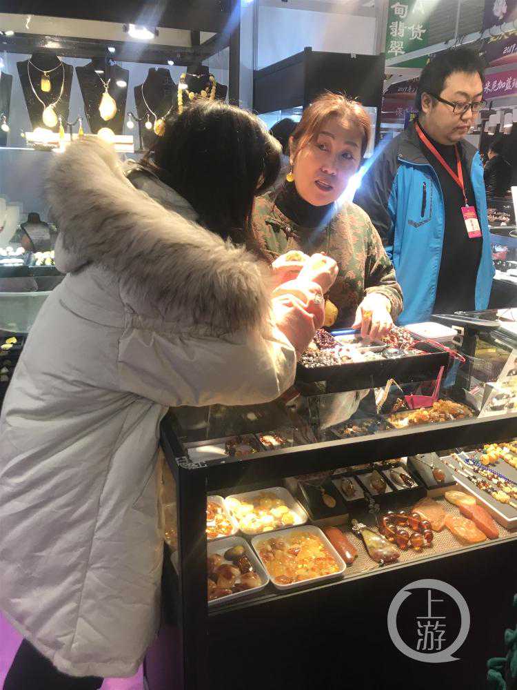 不过,上游新闻记者在现场见到,这些珠宝玉石价格相差非常大,让普通消费者摸不着头脑。有打到标价一折的翡翠手镯,原价两三万,打下来两三千;同样说是蜜蜡,有的几百元一克,有的几百元一大个吊坠……包括翡翠、水晶,绿松石等品种的珠宝石玉价格都参差不齐,看似同样品种价格却相差上万元的不在少数。不少逛展的市民在反复对比、查看后,仍然不敢下单。